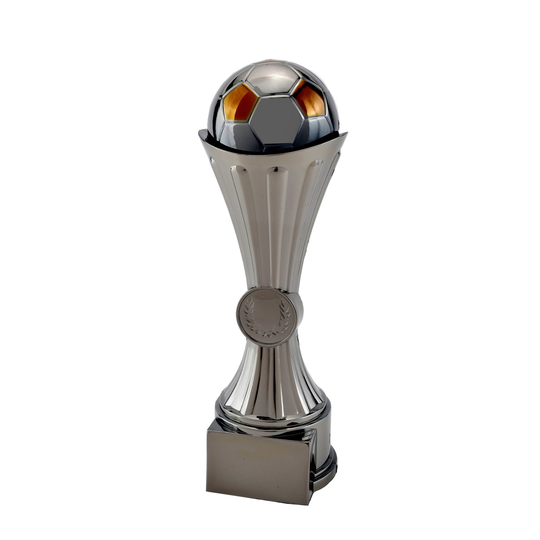 Excellent value for a tall football tower award. One of our most popular trophies, the Weighted Metallised Football Tower is perfect for any football presentation. Built from premium weighted plastic, finished in a high gloss metallic gunmetal grey with copper detail. - 19cm and 23cm.
